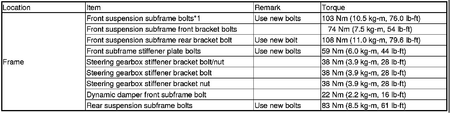 Refer to the Service Data for the bolts/nuts not indicated here.