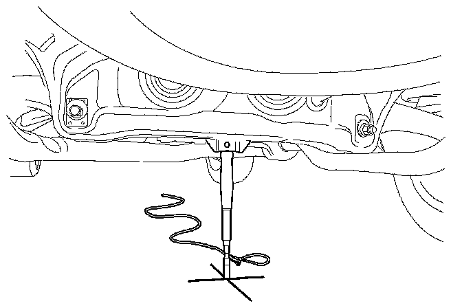 6. Rear area of the vehicle: Place the centering stand under the rear jack point, then mark the floor at the centerline of the tool.
