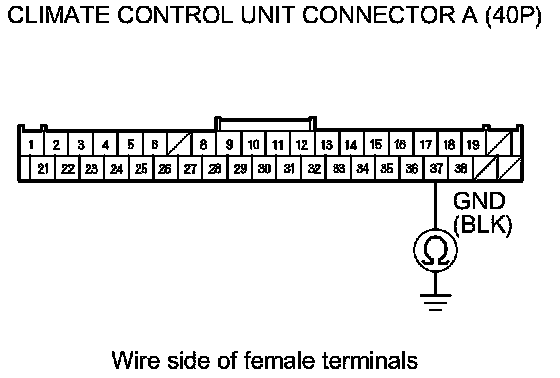 5. Check for continuity between climate control unit connector A (40P) terminal No. 37 and body ground.