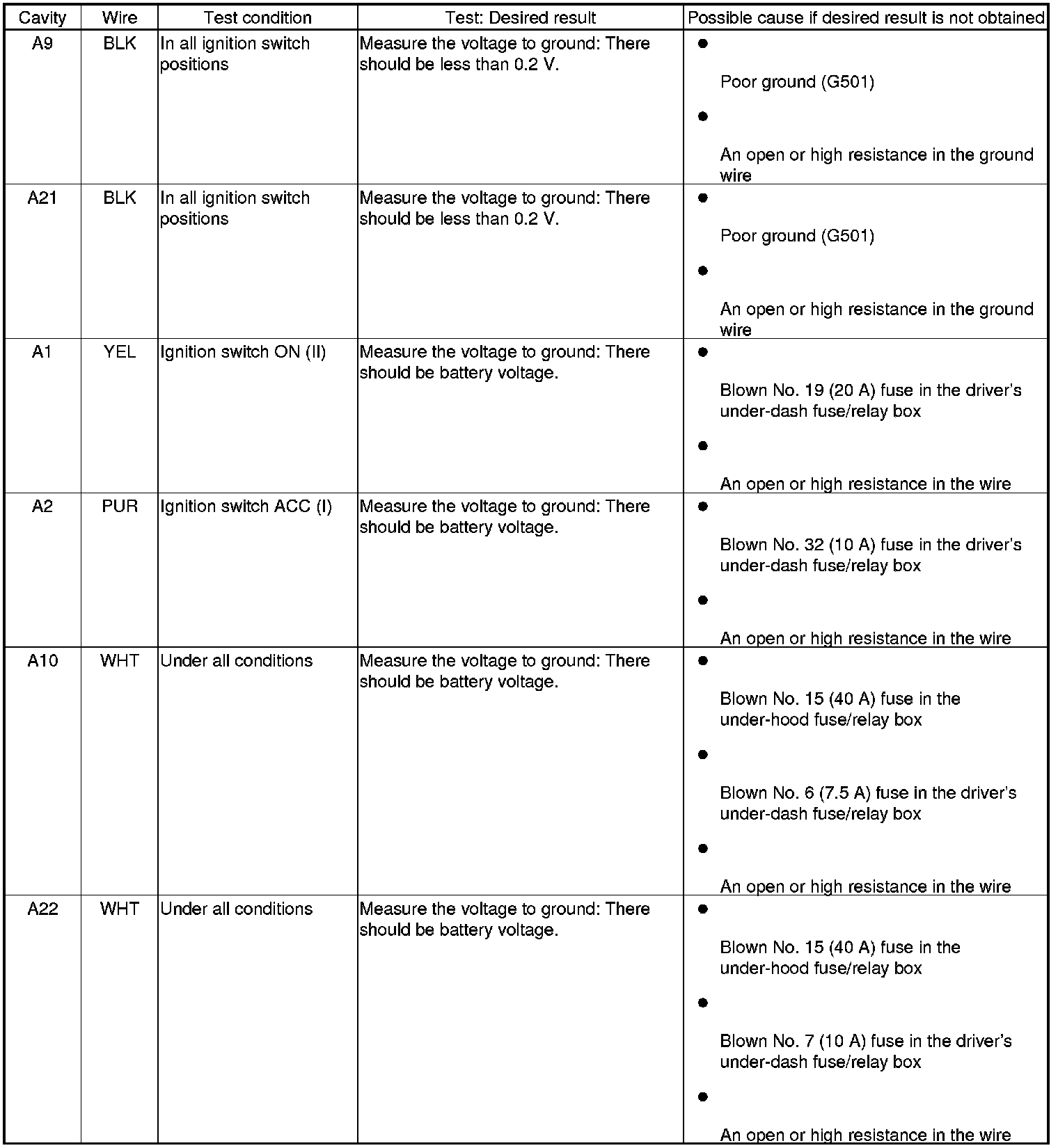 5. With the connectors still disconnected, do the following input tests.