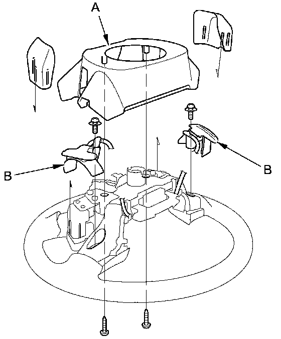 2. Remove the steering wheel rear cover (A) and the paddle shifters (B).