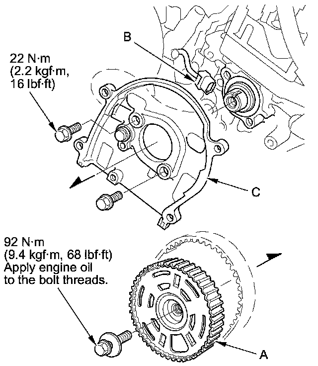 3. Disconnect the CMP sensor connector (B), then remove the back cover (C).