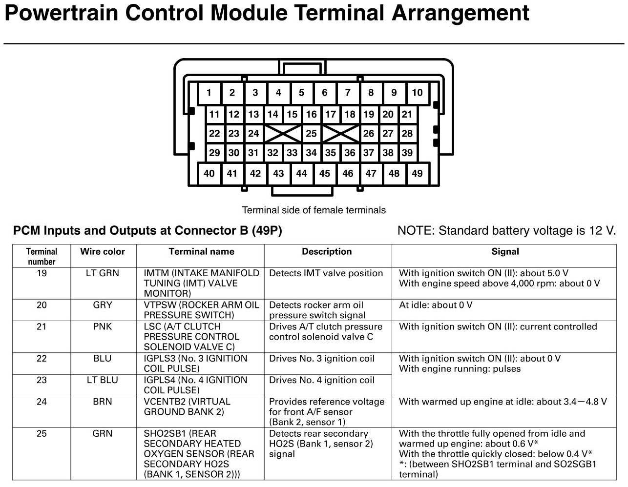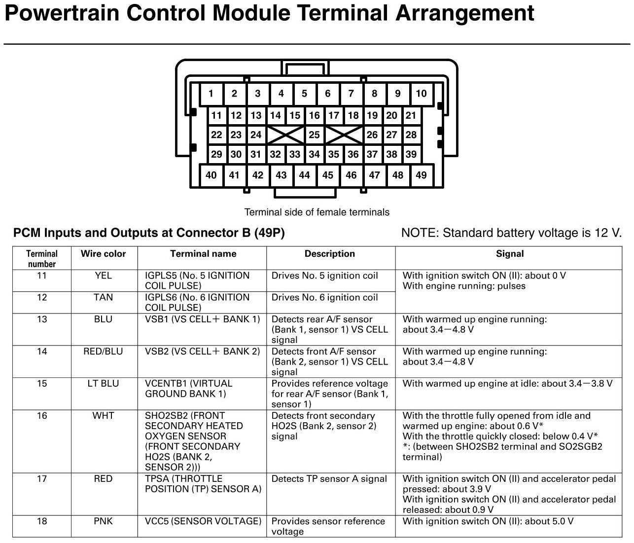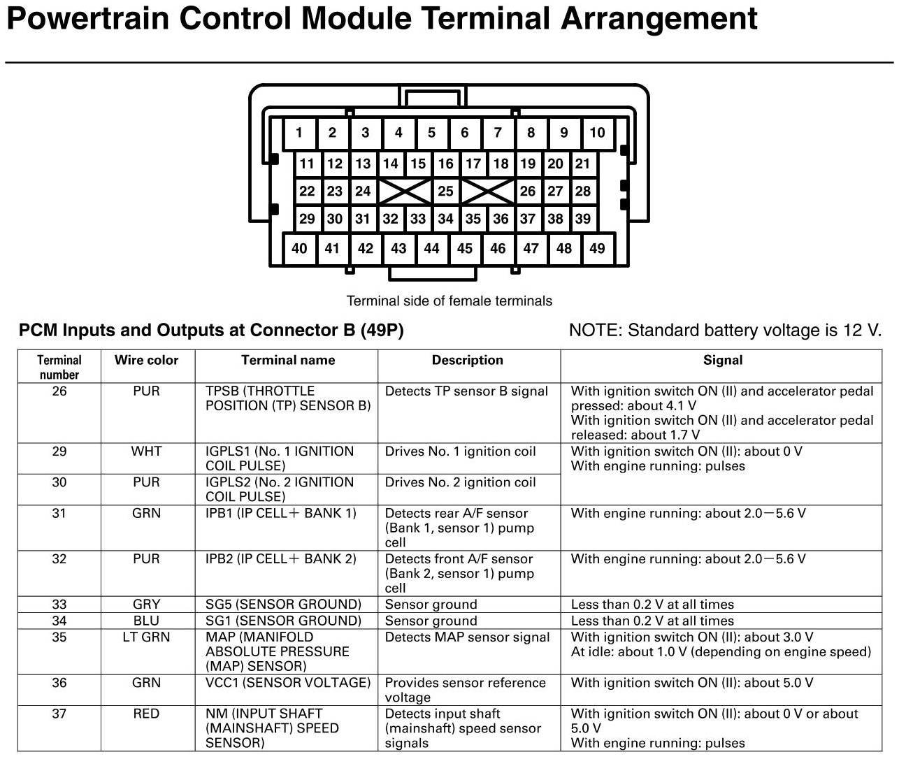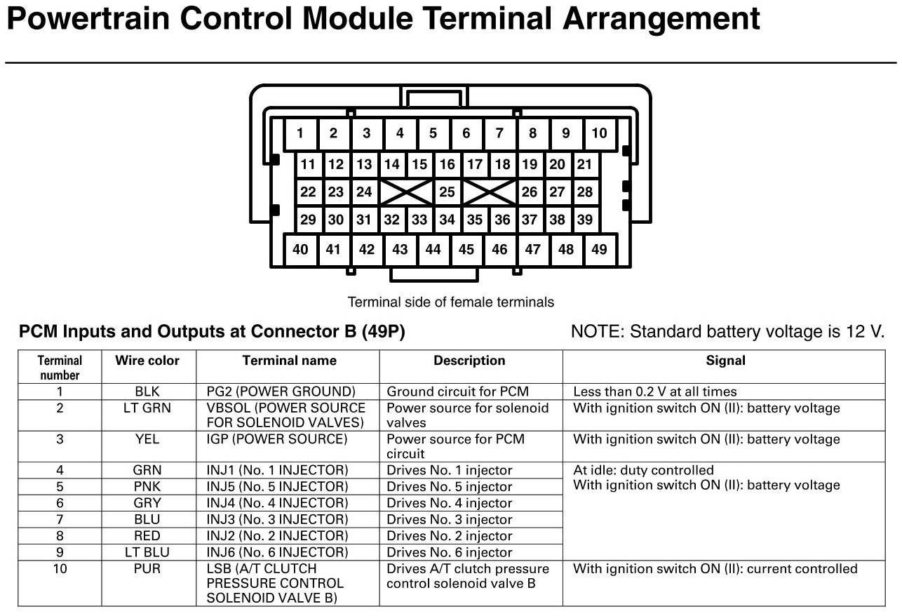 PCM Inputs And Outputs At Connector B