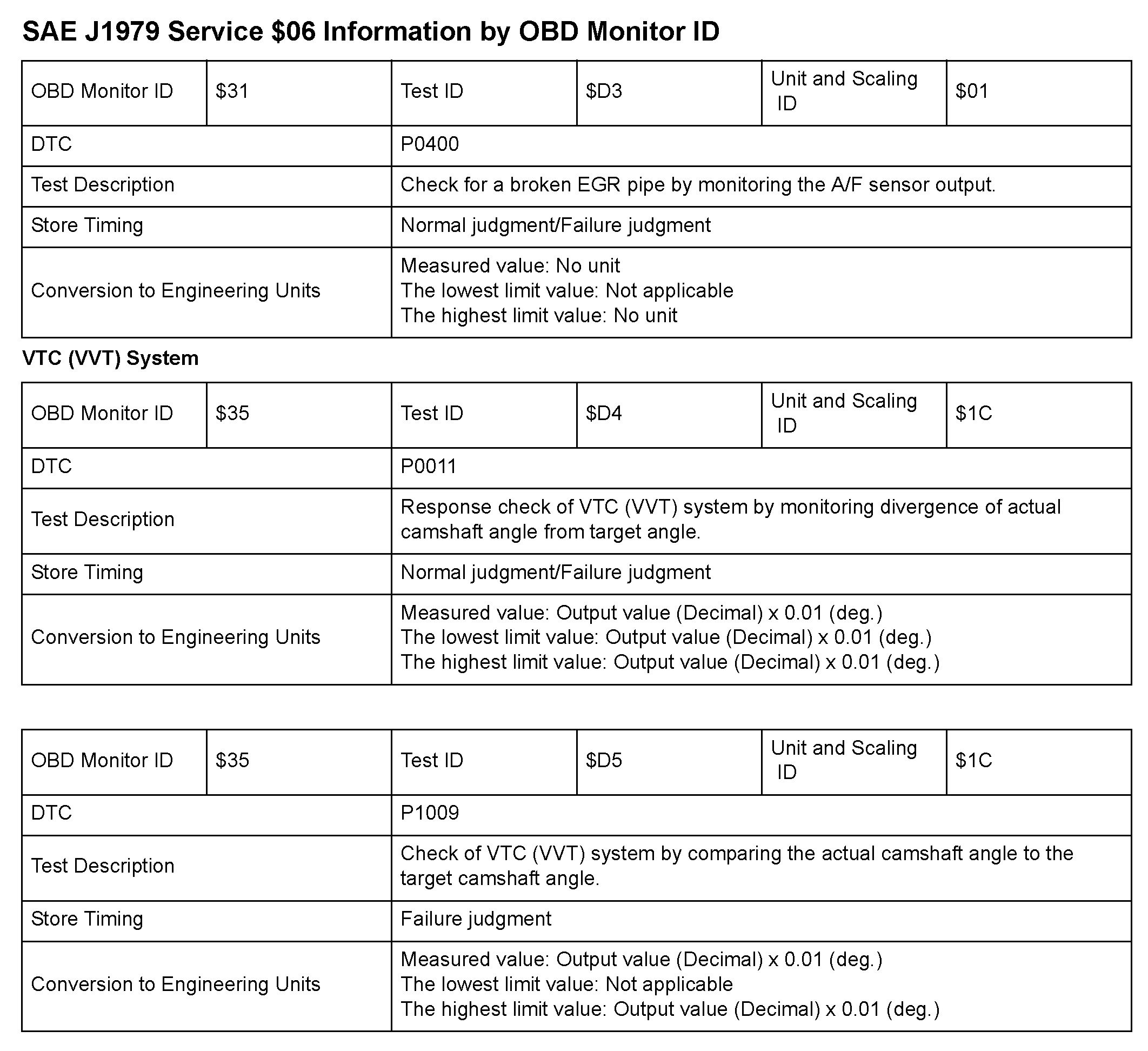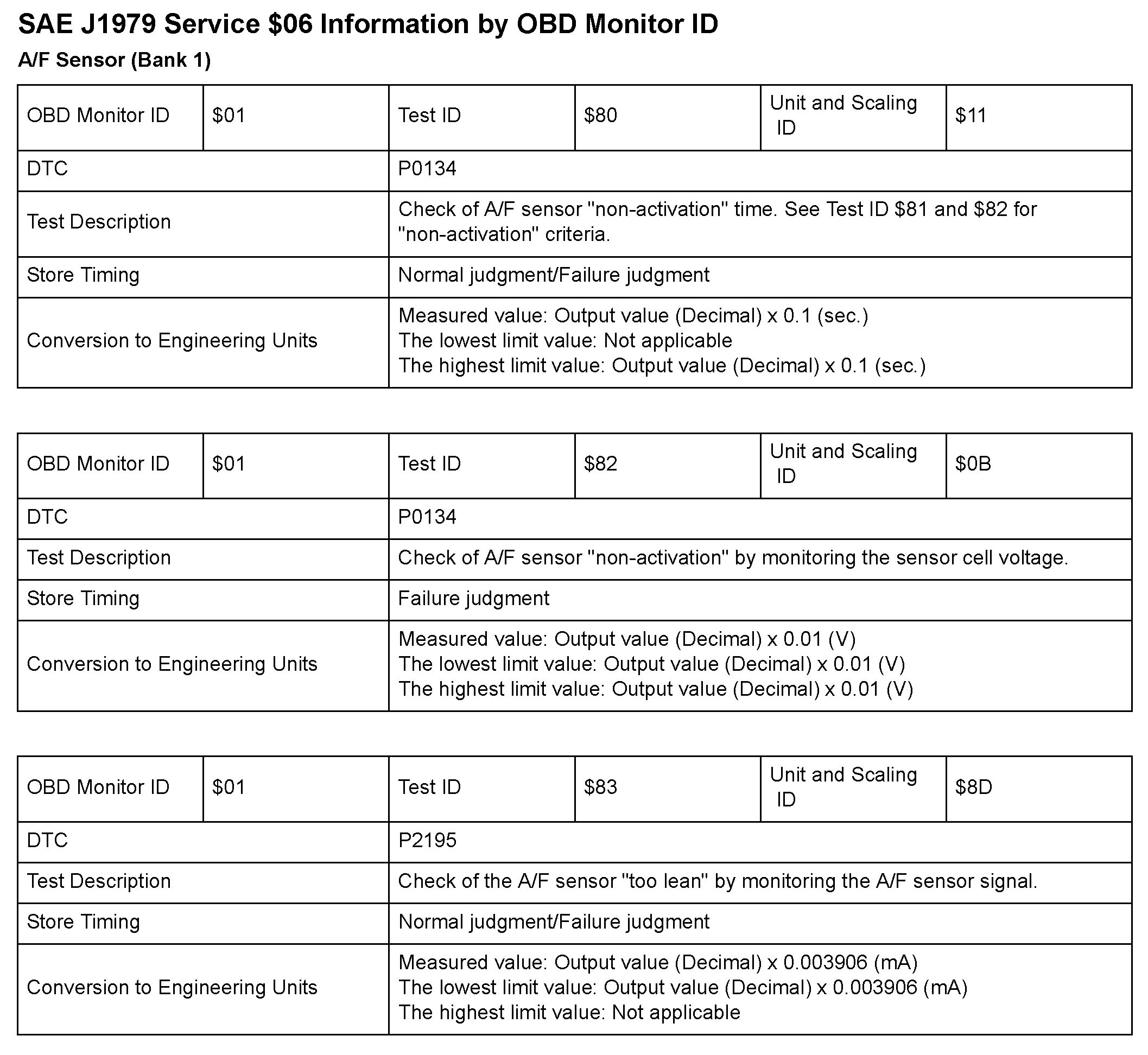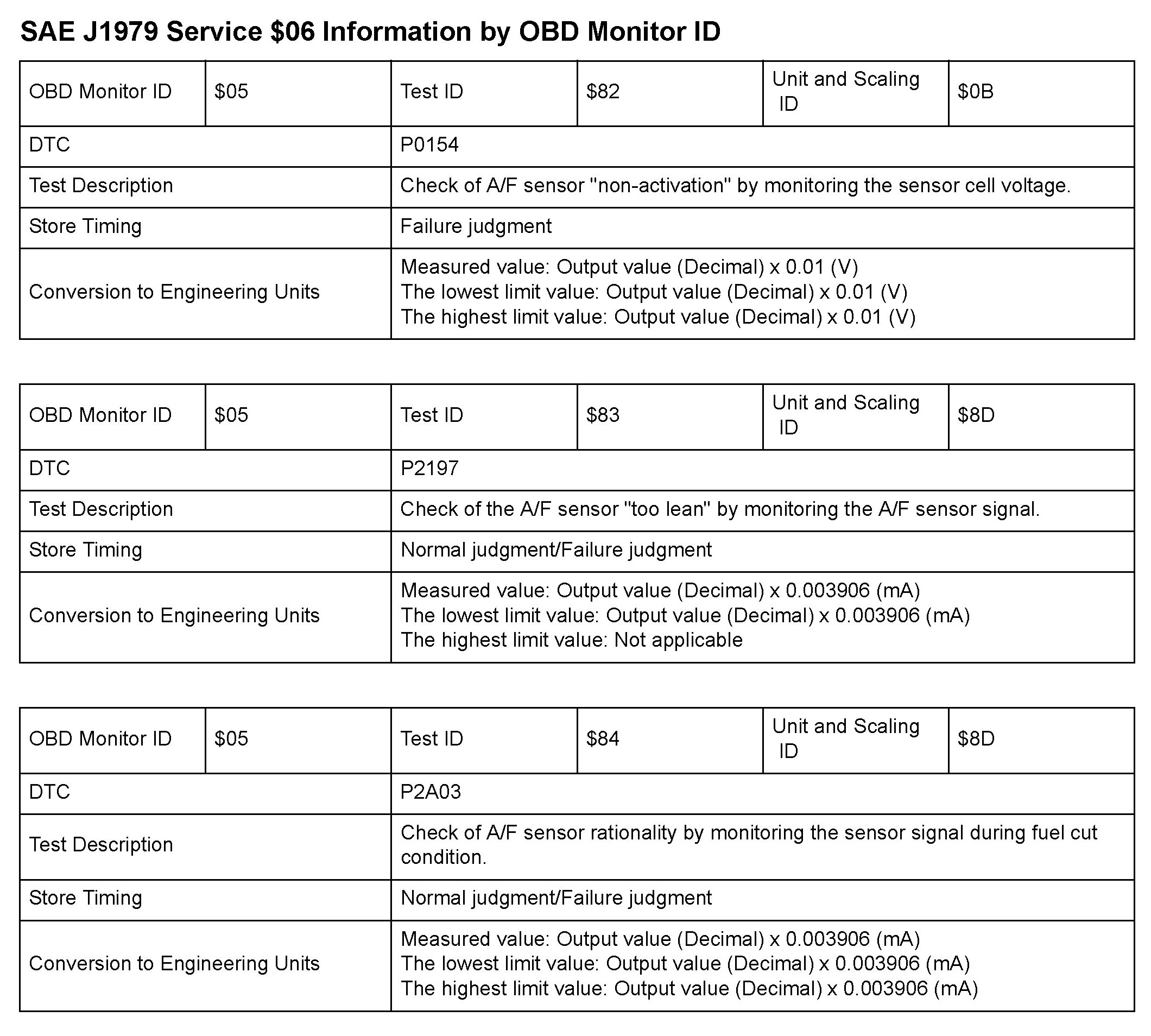 MODE 06 DATA CHARTS