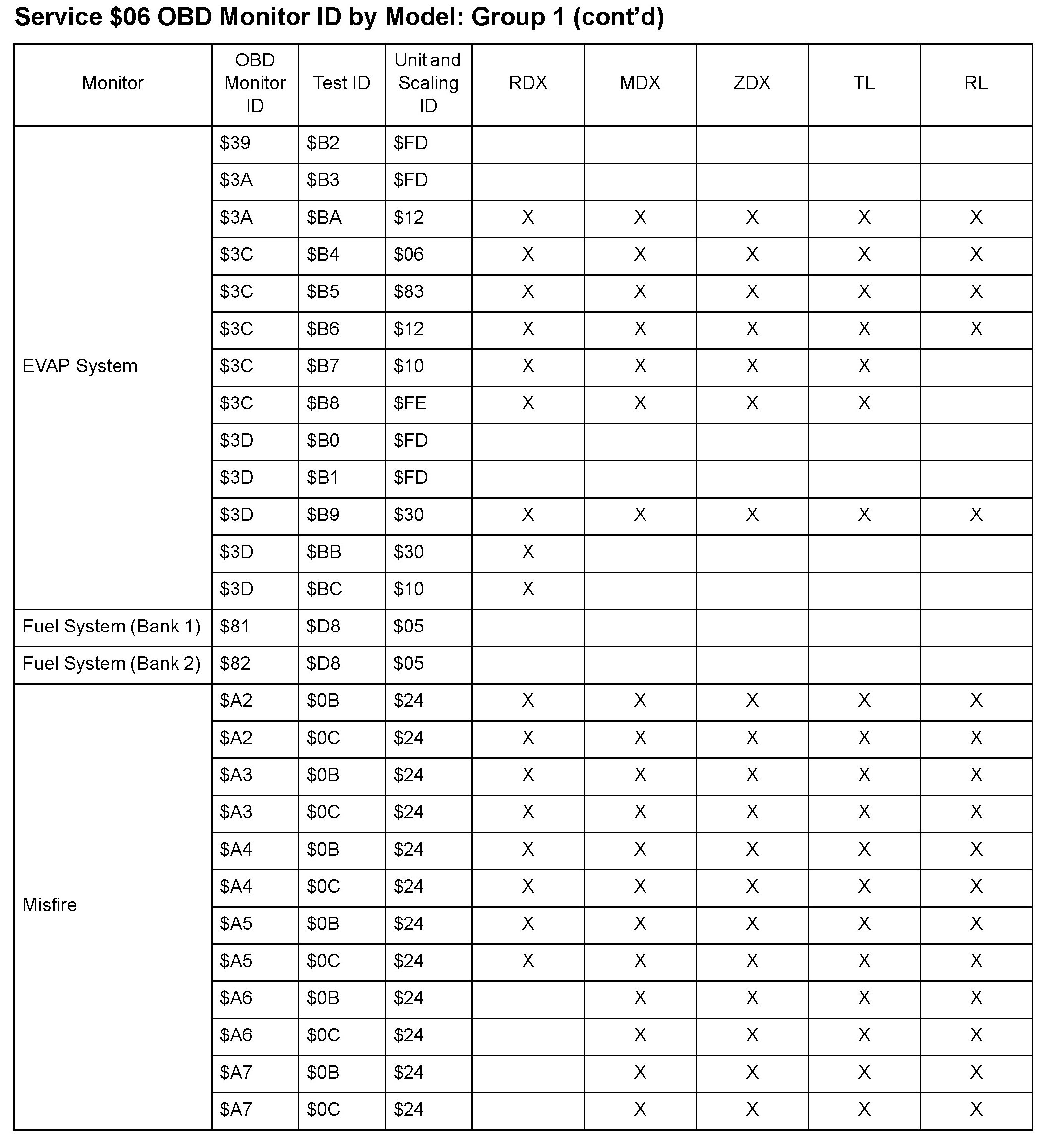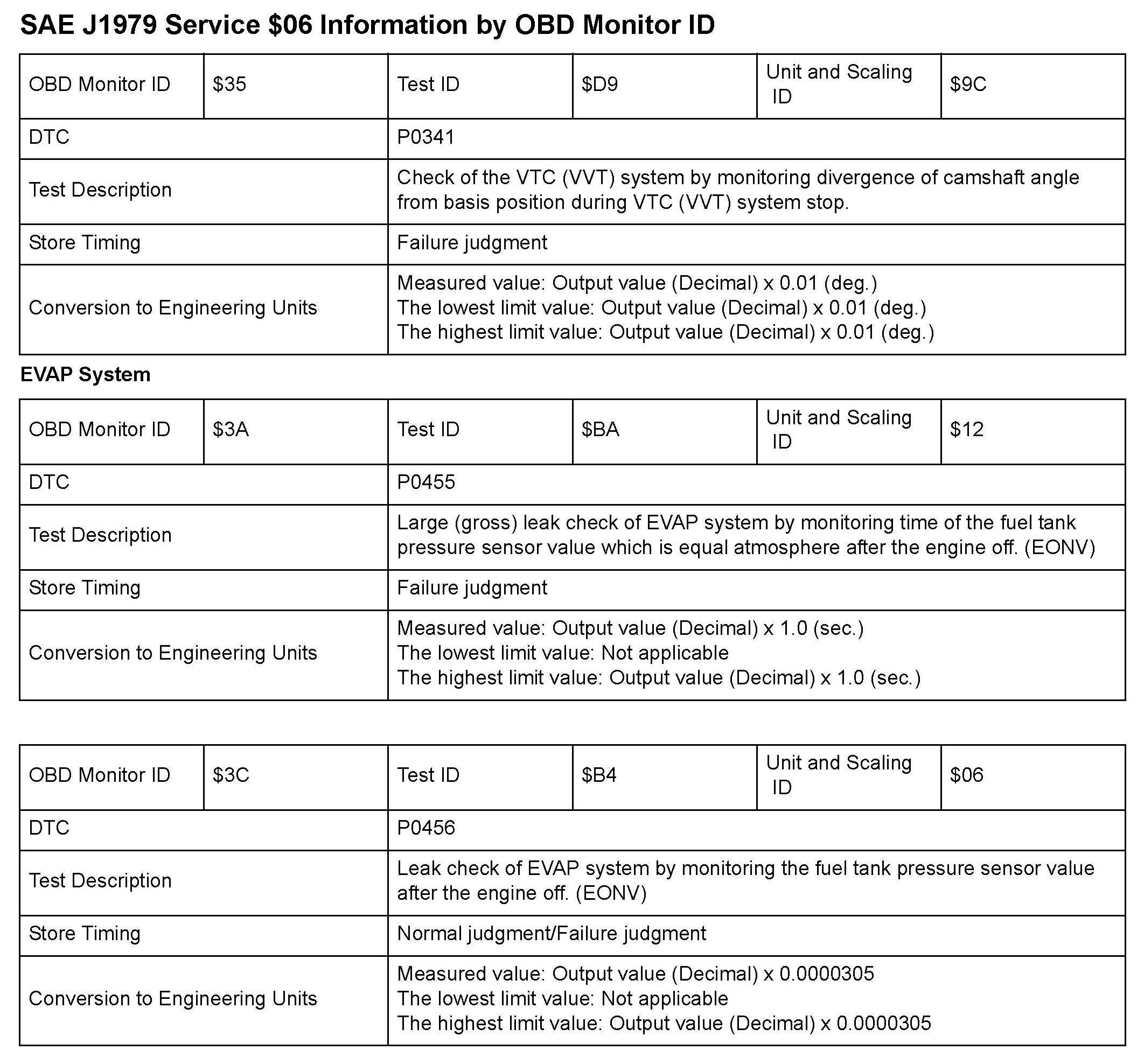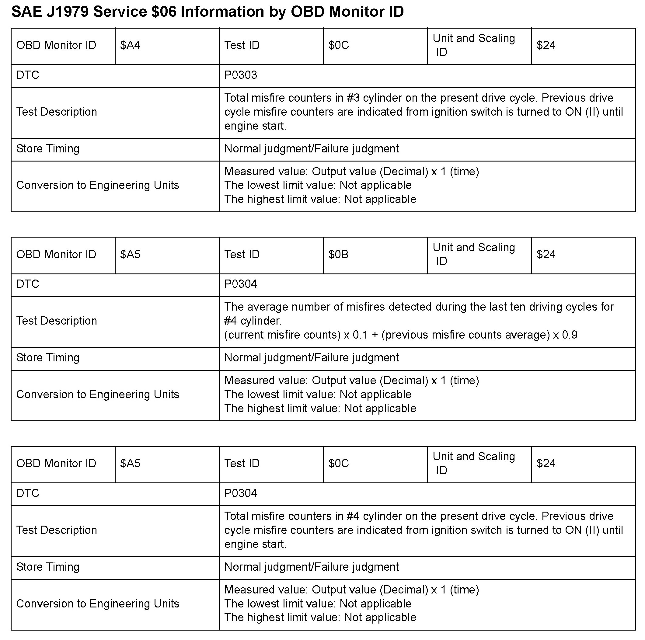 MODE 06 DATA CHARTS