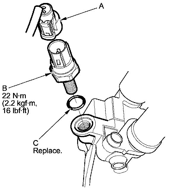 2. Install the parts in the reverse order of removal with a new O-ring (C).