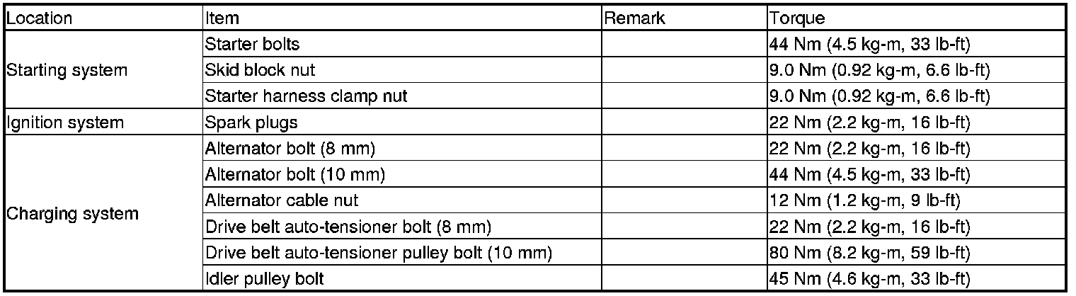 Starting and Charging: Specifications