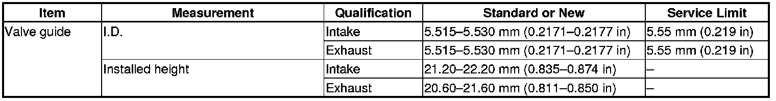 Valve Guide Specification(s)