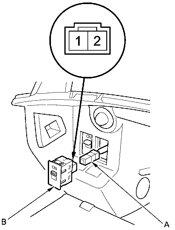2. Disconnect the 2P connector (A) from the keyless access system mode switch (B).