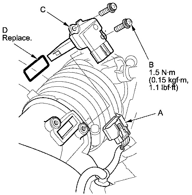 4. Install the parts in the reverse order of removal with a new O-ring (D).