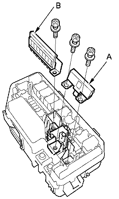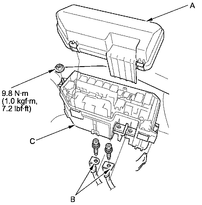 3. Remove the under-hood fuse/relay box (C) from the bracket.