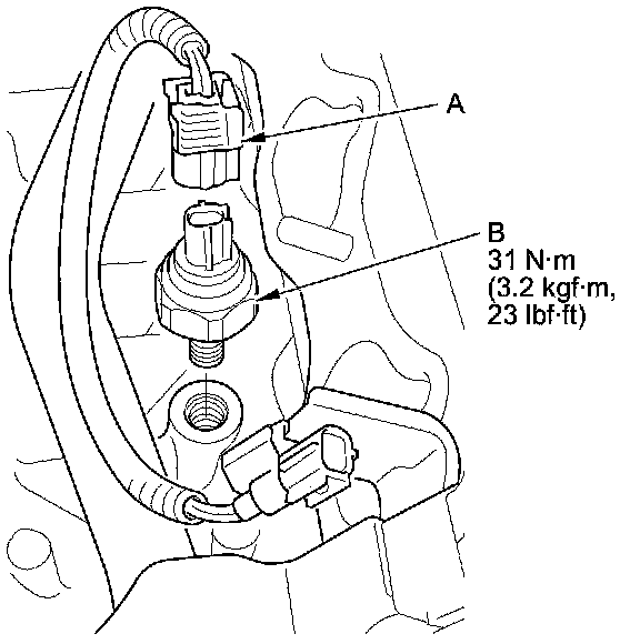 4. Remove the knock sensor (B).