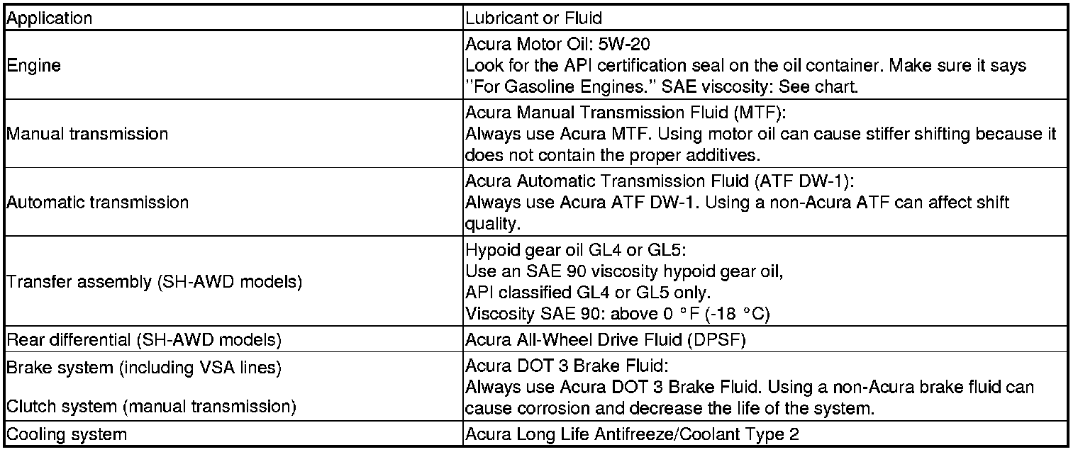 Home >> Acura >> 2011 >> TL FWD V6-3.5L >> Repair and Diagnosis >> Specifications >> Fluid Type Specifications >> Fluids