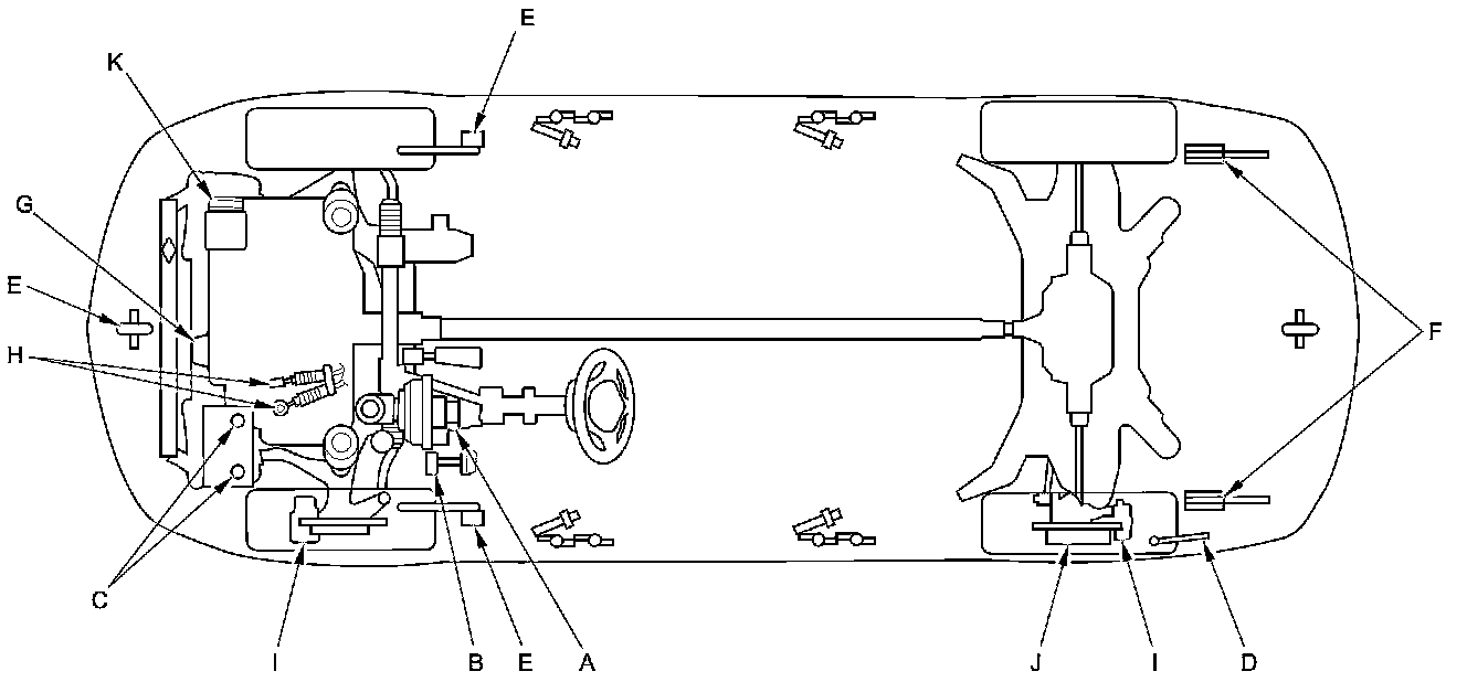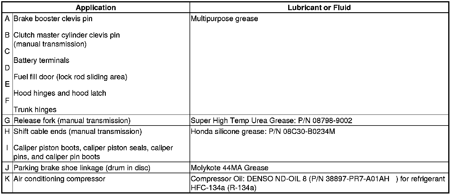 - Lubricate the following areas using the recommended lubricants and fluids.