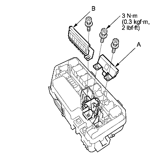 3. Remove the under-hood fuse/relay box (C) from the bracket.
