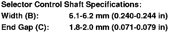 If the measurement is out of the specification, repair the selector control shaft end, and recheck the transmission range switch continuity.
