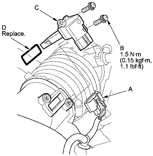 4. Install the parts in the reverse order of removal with a new O-ring (D).