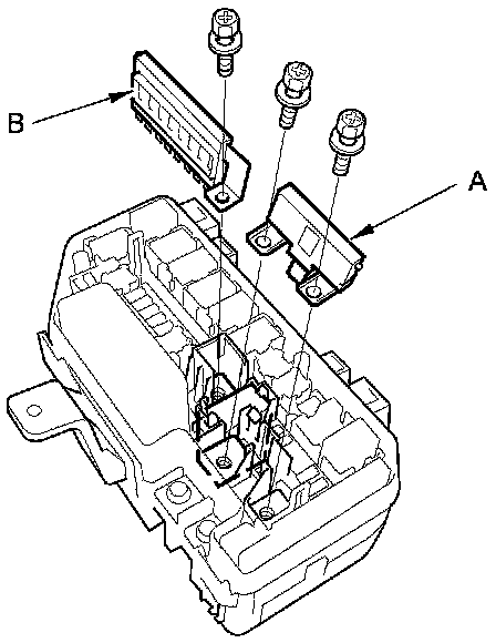 1. Remove the under-hood fuse/relay box Under-Hood Fuse/Relay Box Removal and Installation.