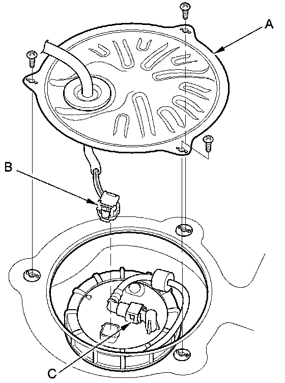 5. Disconnect the quick-connect fitting (C) from the fuel tank unit.