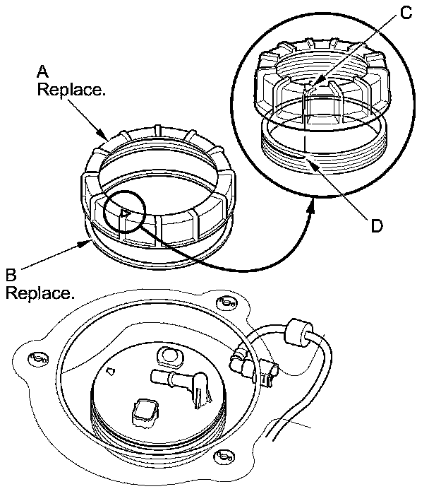 NOTE: To prevent a fuel leak, check the base gasket, visually or by hand, to make sure it is not pinched.