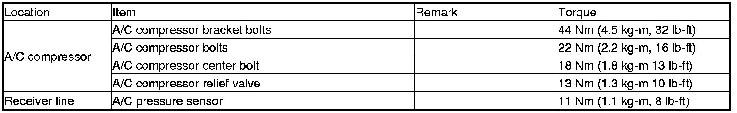 Home >> Acura >> 2011 >> ZDX V6-3.7L >> Repair and Diagnosis >> Specifications >> Mechanical Specifications >> Heating and Air Conditioning >> System Specifications >> Torque Specifications
