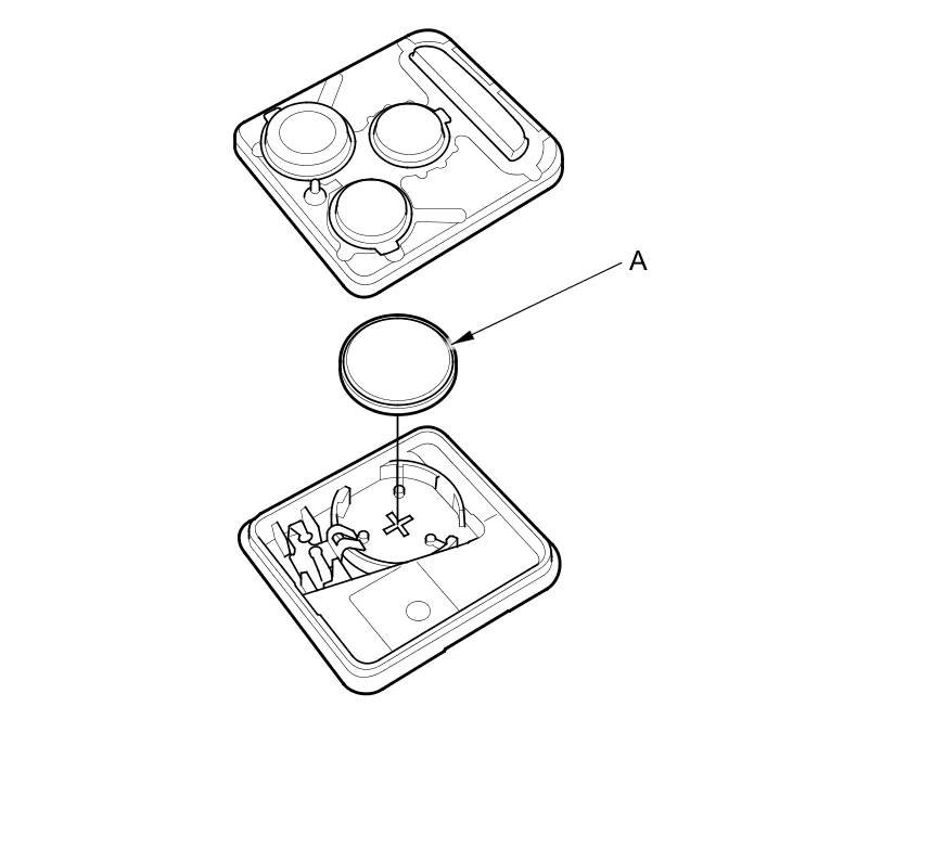 4. Replace the transmitter battery (A) with a new one (CR1616), and try to lock and unlock the doors with the transmitter by pressing the lock or unlock button five or six times.