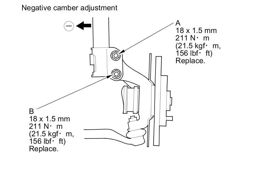 - For negative camber adjustment replace the damper pinch bolt of the lower side with the adjusting bolt. Push in damper to create a negative gain in camber angle.