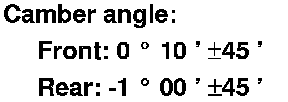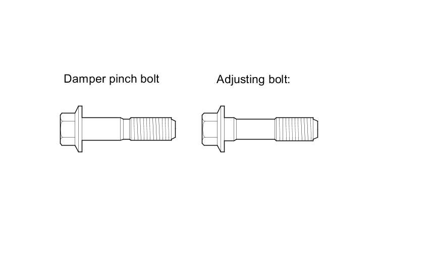 - The camber angle can be adjusted up to ±25 ' (center of tolerance) by replacing one damper pinch bolt with the adjusting bolt.
