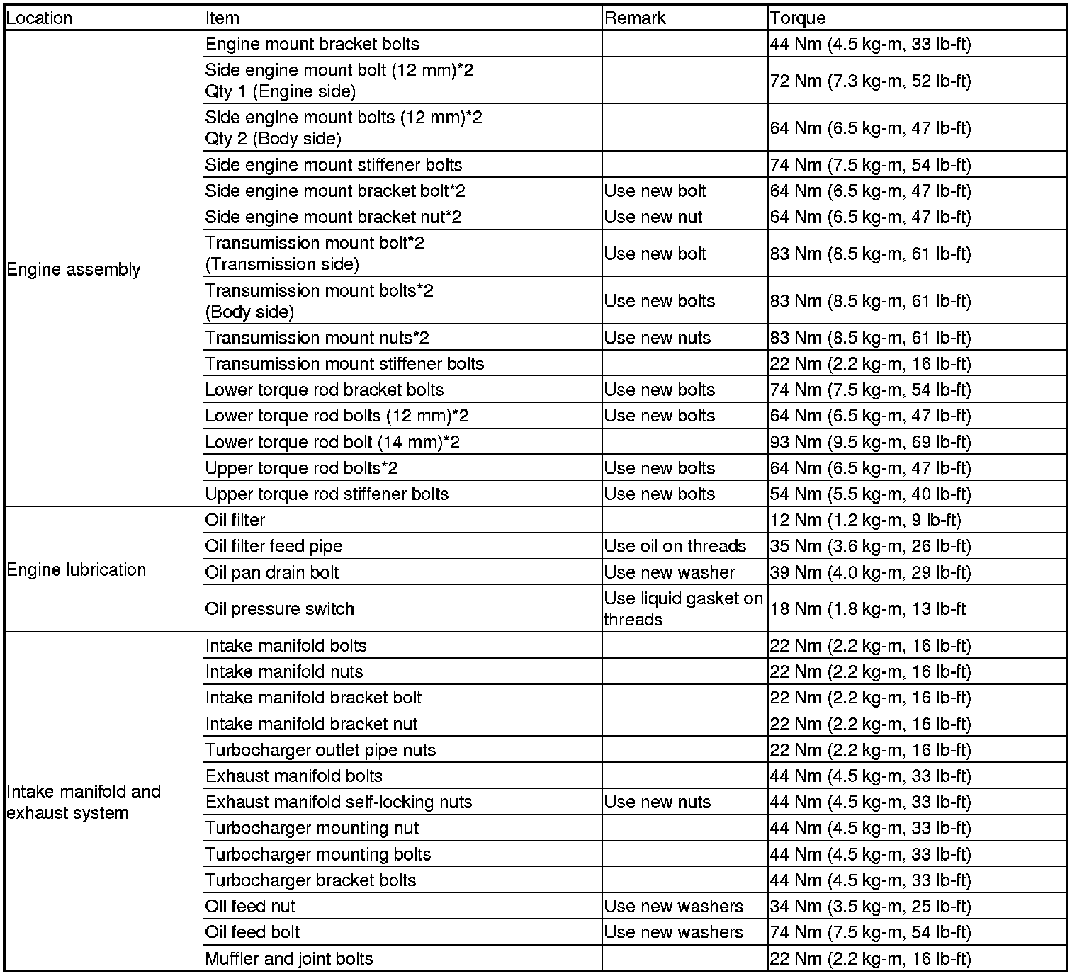 Torque Specifications