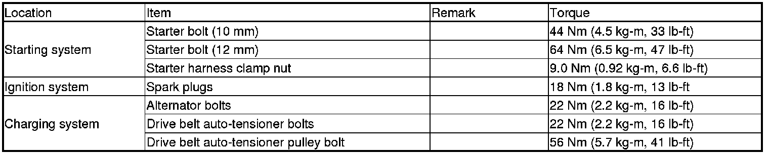 *Refer to the S/M section for the bolts/nuts not indicated here.
