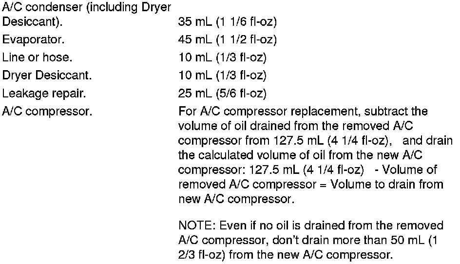 Too little oil damages the A/C compressor; too much oil reduces the cooling capacity of the system, and can produce high vent temperatures.
