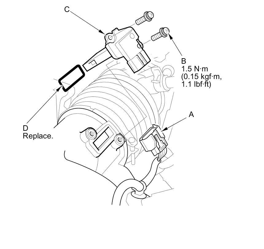 4. Install the parts in the reverse order of removal with a new gasket (D).
