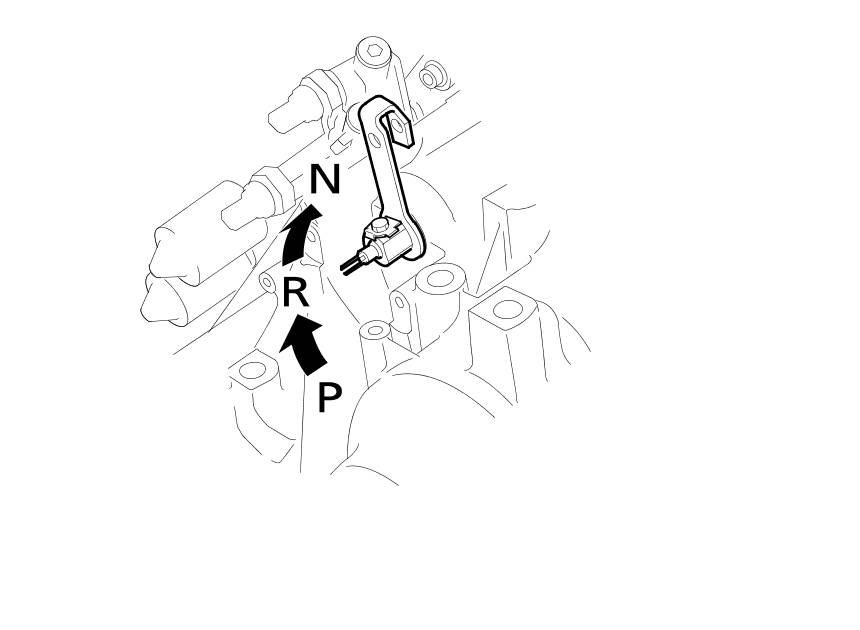 11. Tighten the bolts on the transmission range switch while you continue to hold the N position. Do not move the transmission range switch when tightening the bolts. Then remove the feeler gauge.