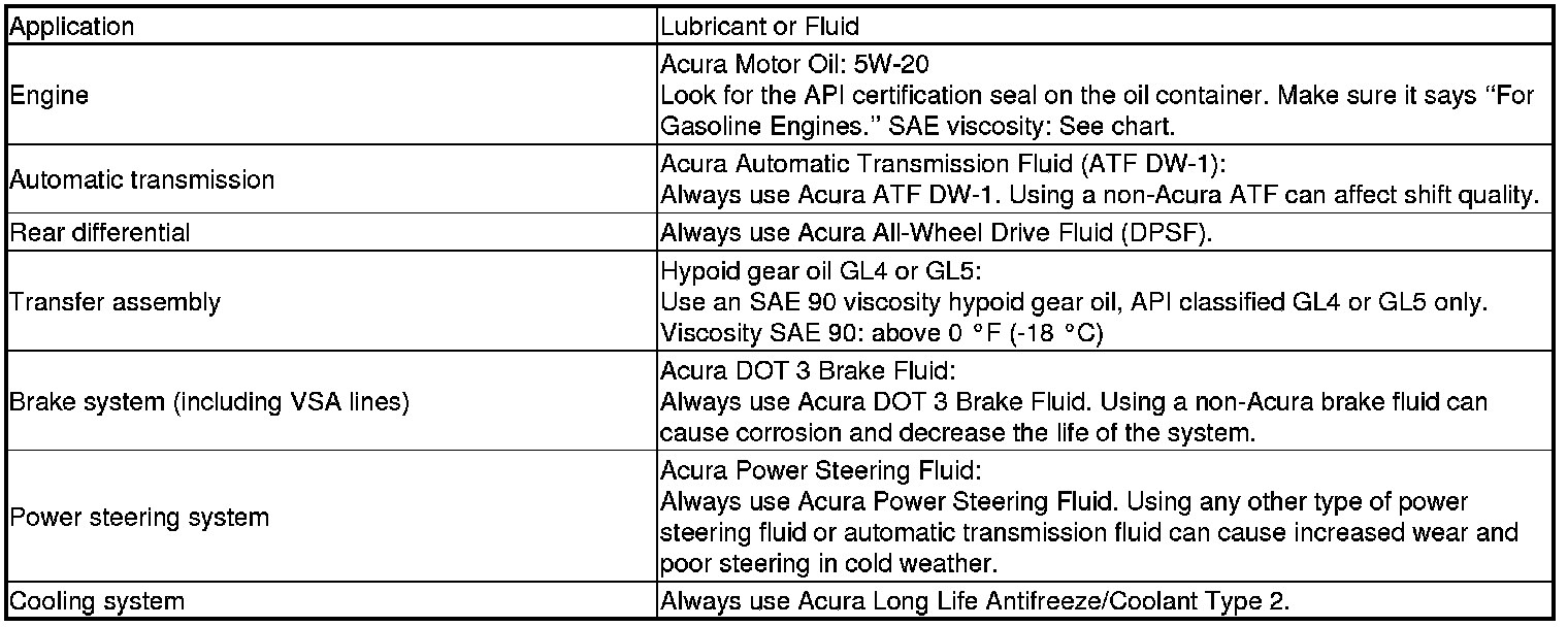 Home >> Acura >> 2012 >> RL V6-3.7L >> Repair and Diagnosis >> Specifications >> Fluid Type Specifications >> Fluids