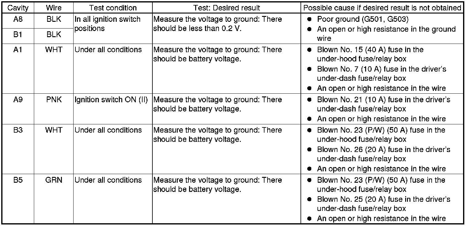 - If all the input tests prove OK, the control unit must be faulty; replace it.