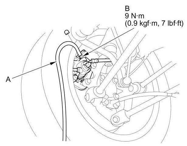 4. Attach a length of clear drain tube (A) to the bleed screw (B), then loosen the bleed screw to allow air to escape from the system. Then tighten the bleed screw securely.