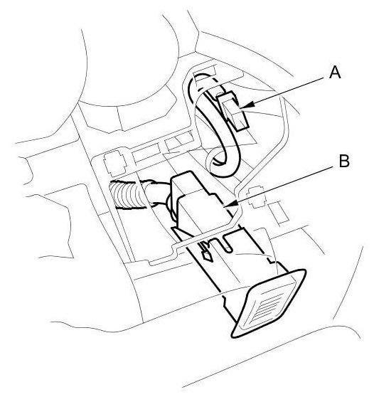 3. Disconnect the connector (A) from the humidity/in-car temperature sensor (B).