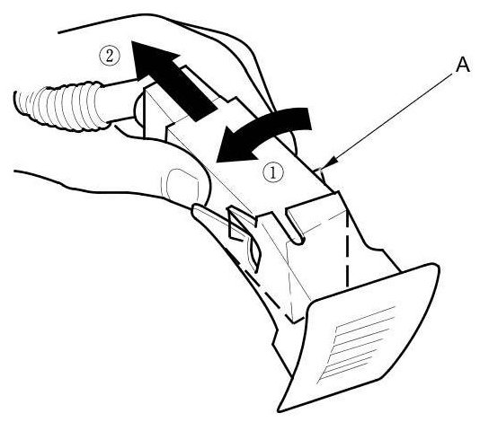 5. Pull sensor toward steering column to unlock right lock tab (A). Maintain the pressure with thumb to keep left tab unlocked while unhooking right lock tab then pull out the sensor.