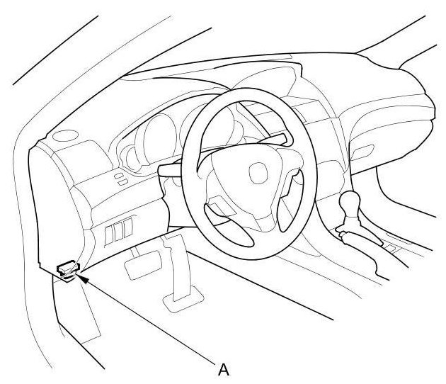 2. Connect the HDS to the data link connector (DLC) (A) located under the driver's side of the dashboard.
