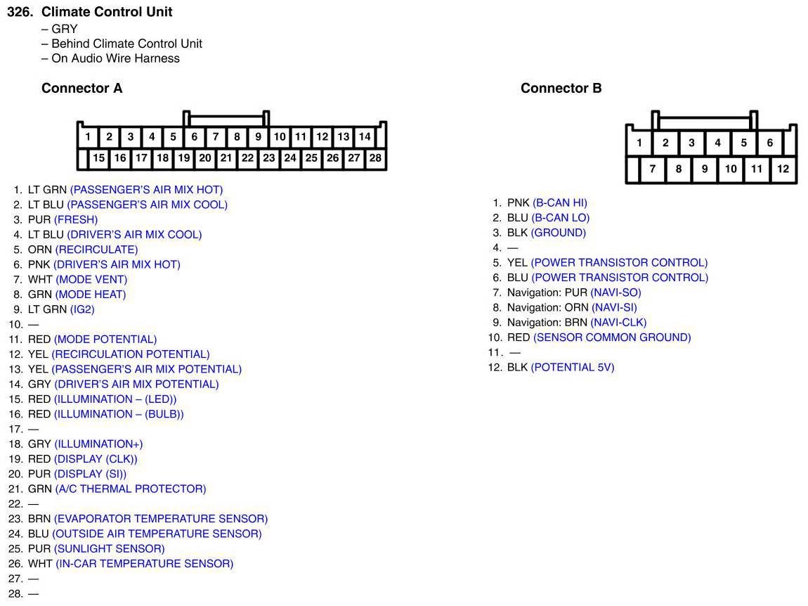 Climate Control Unit Connector View