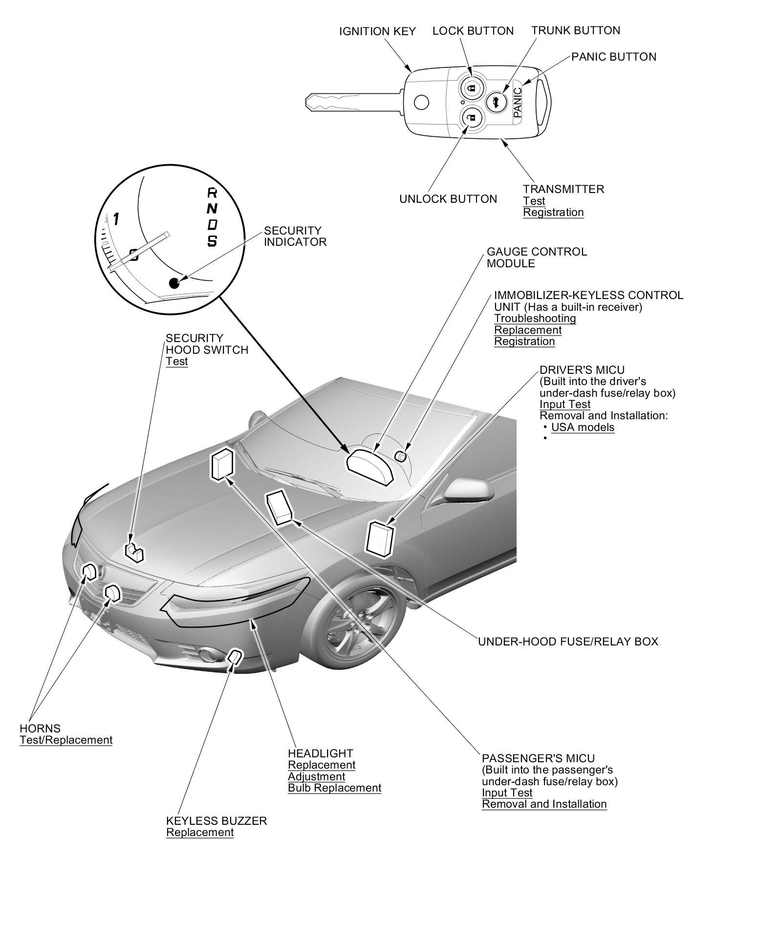 Keyless/Power Door Locks/Security System Component Location Index