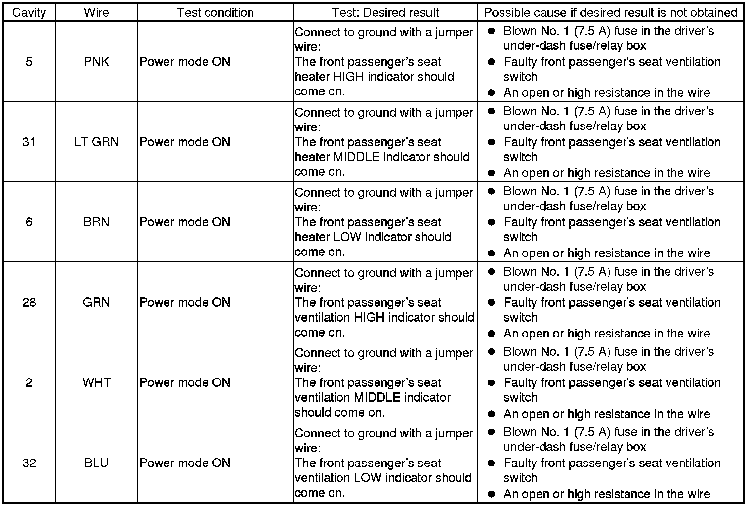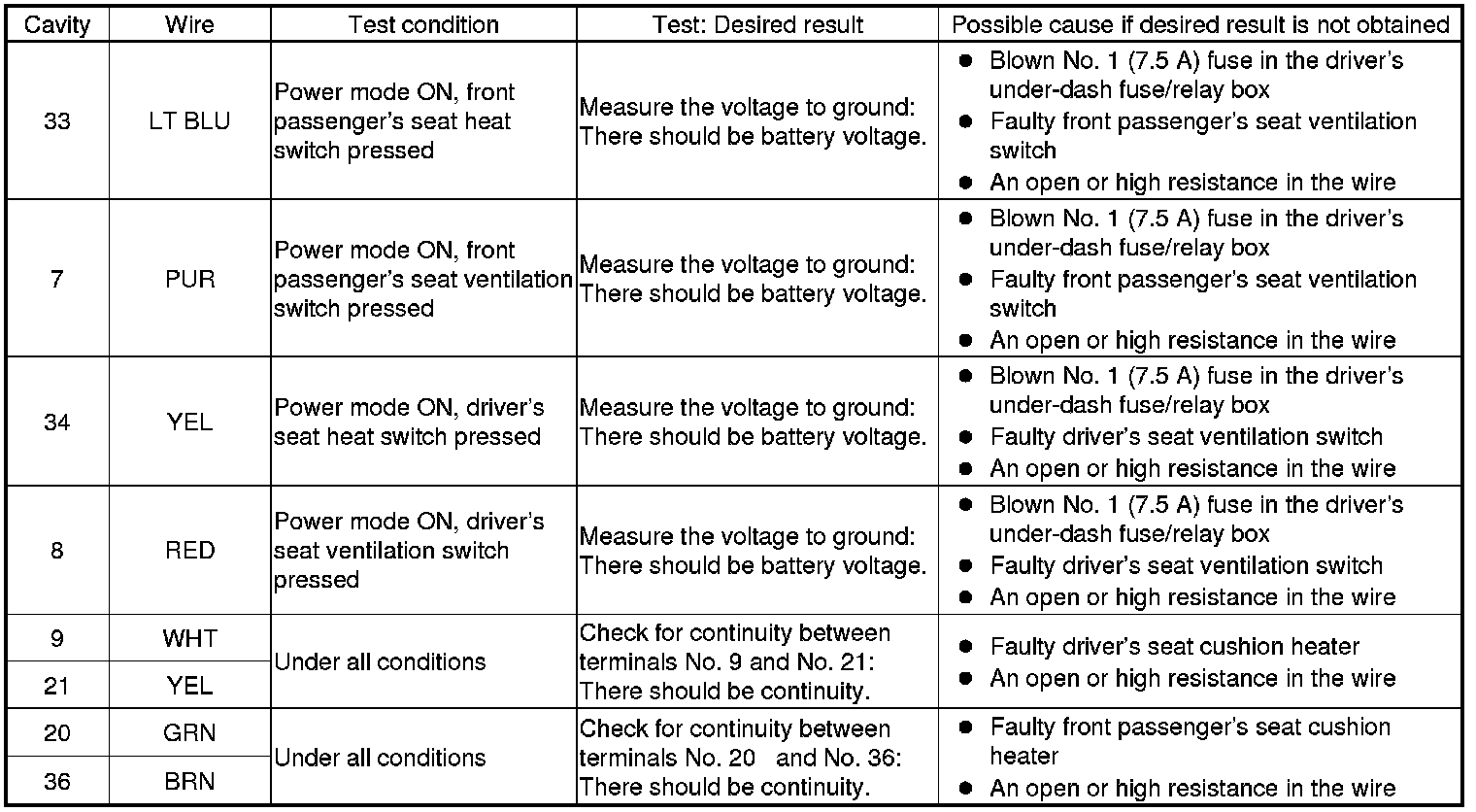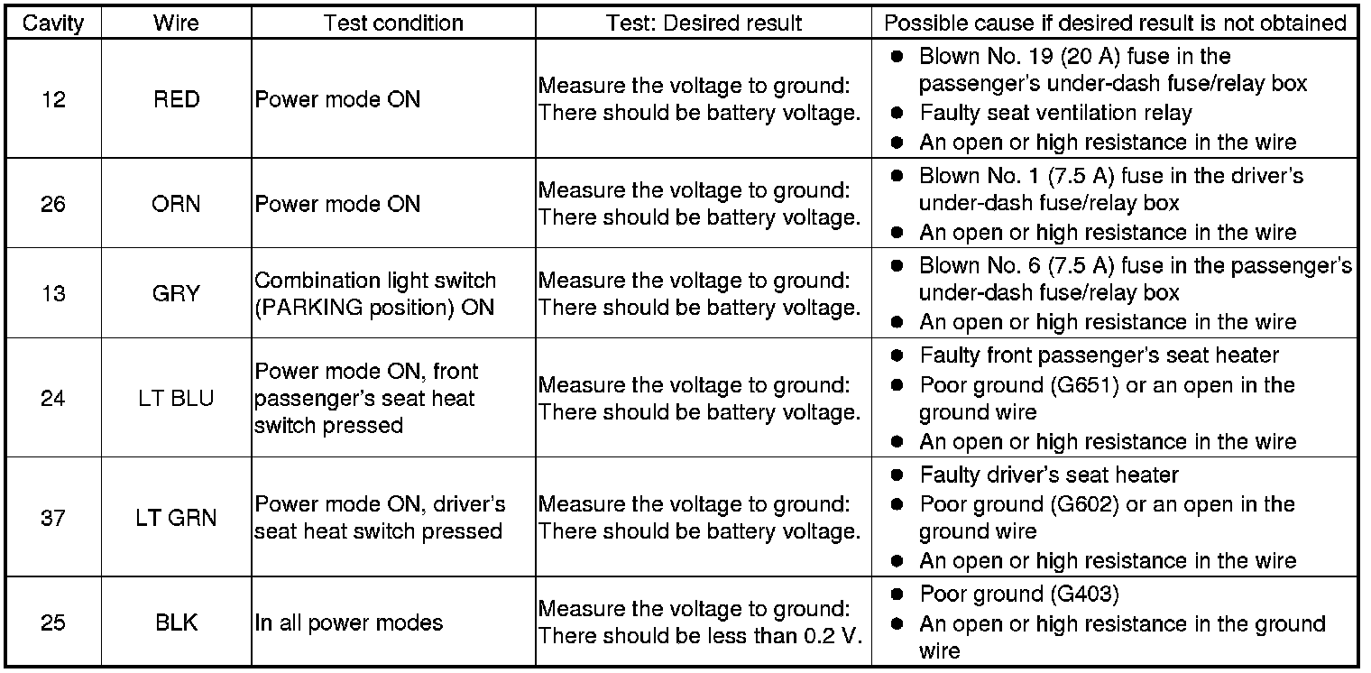 Ventilated Seat Control Unit Input Test/Replacement