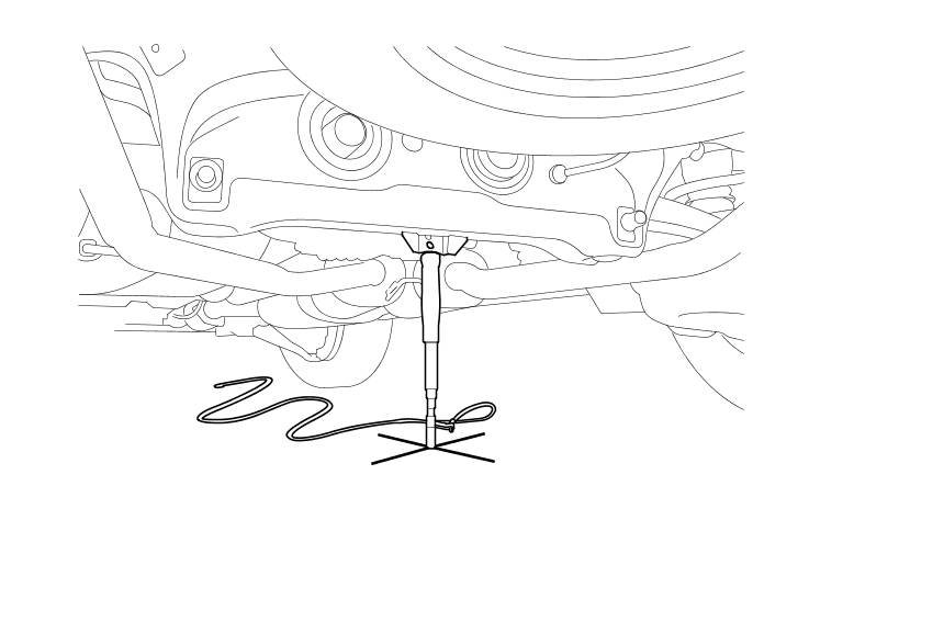 6. Rear area of the vehicle: Place the centering stand under the rear jack point, then mark the floor at the centerline of the tool.