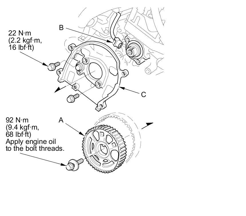 3. Disconnect the CMP sensor connector (B), then remove the back cover (C).