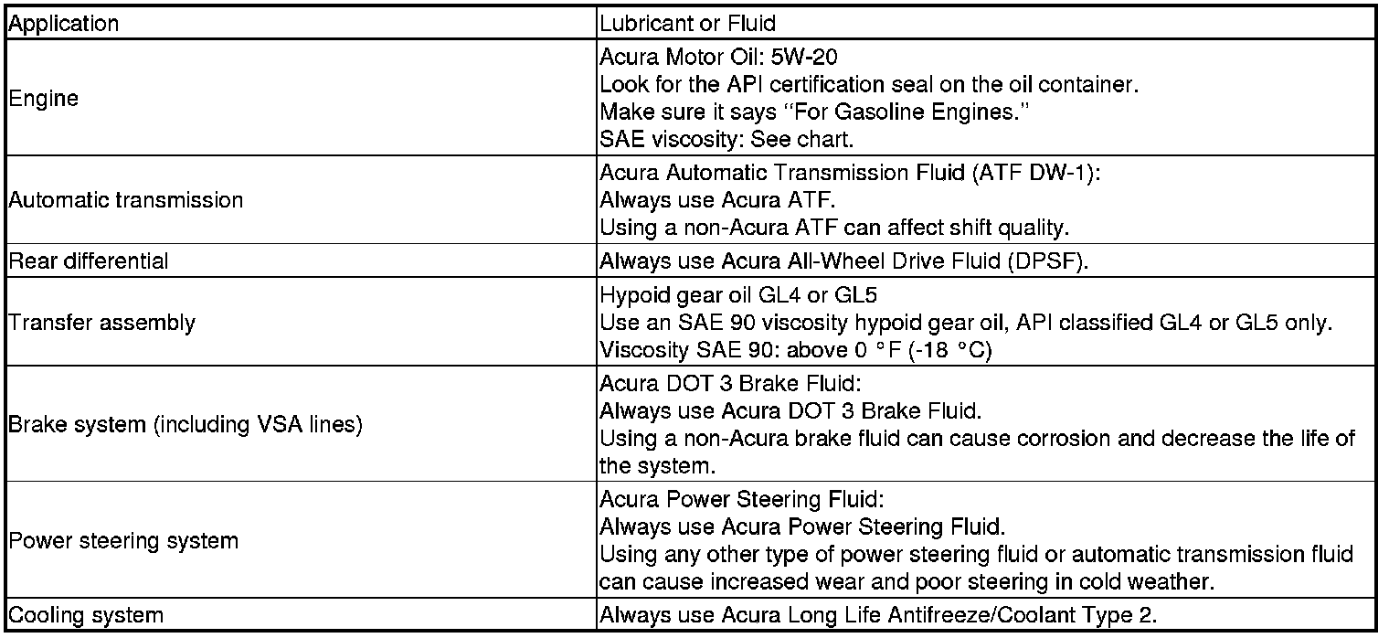 Home >> Acura >> 2012 >> ZDX V6-3.7L >> Repair and Diagnosis >> Specifications >> Fluid Type Specifications >> Fluids