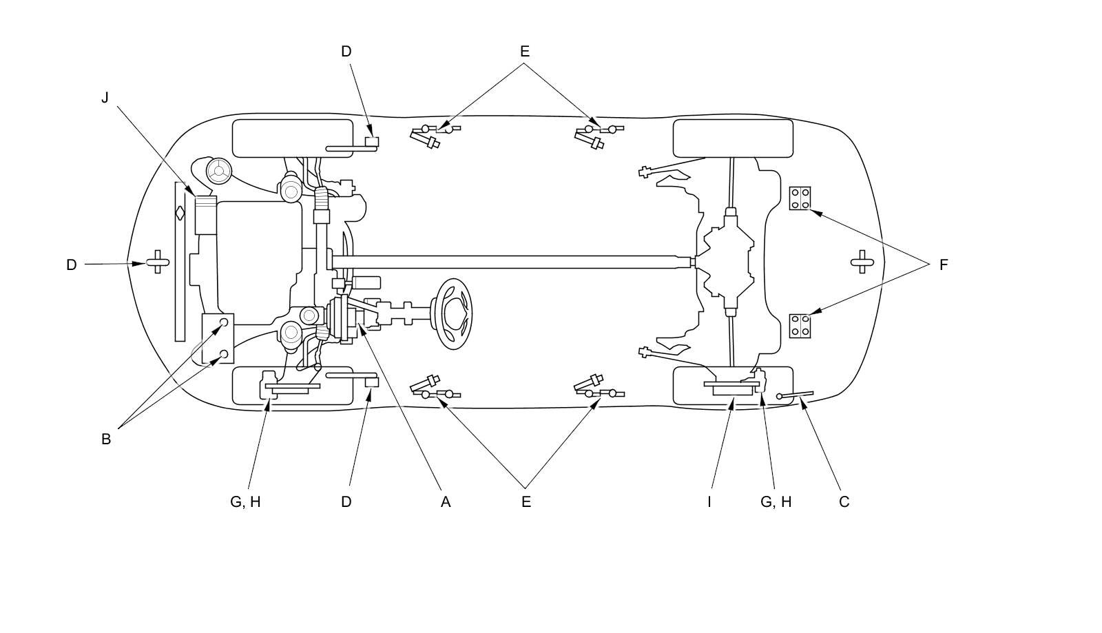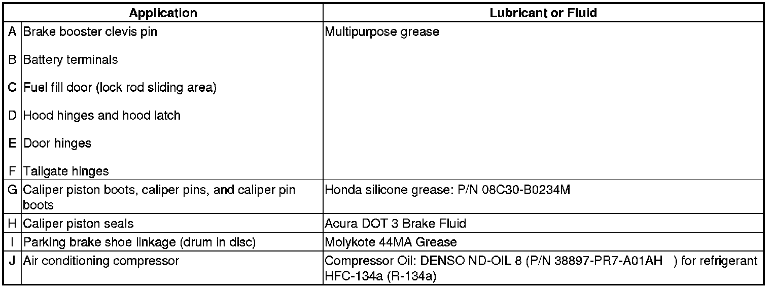 - Lubricate the following areas using the recommended lubricants and fluids.