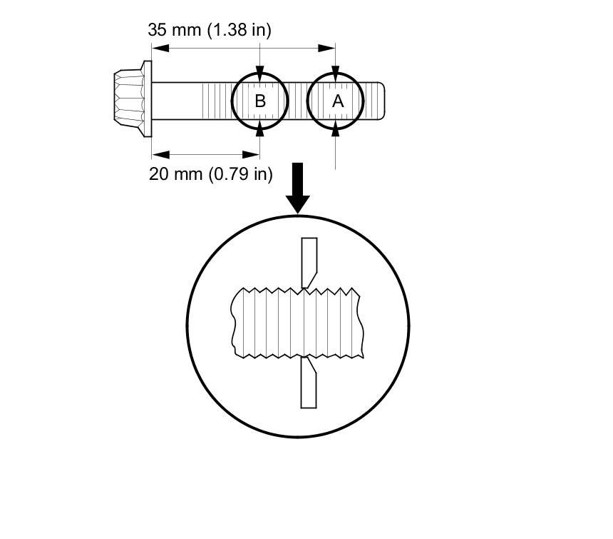 Measure the diameter of each connecting rod bolt at point A and point B.
