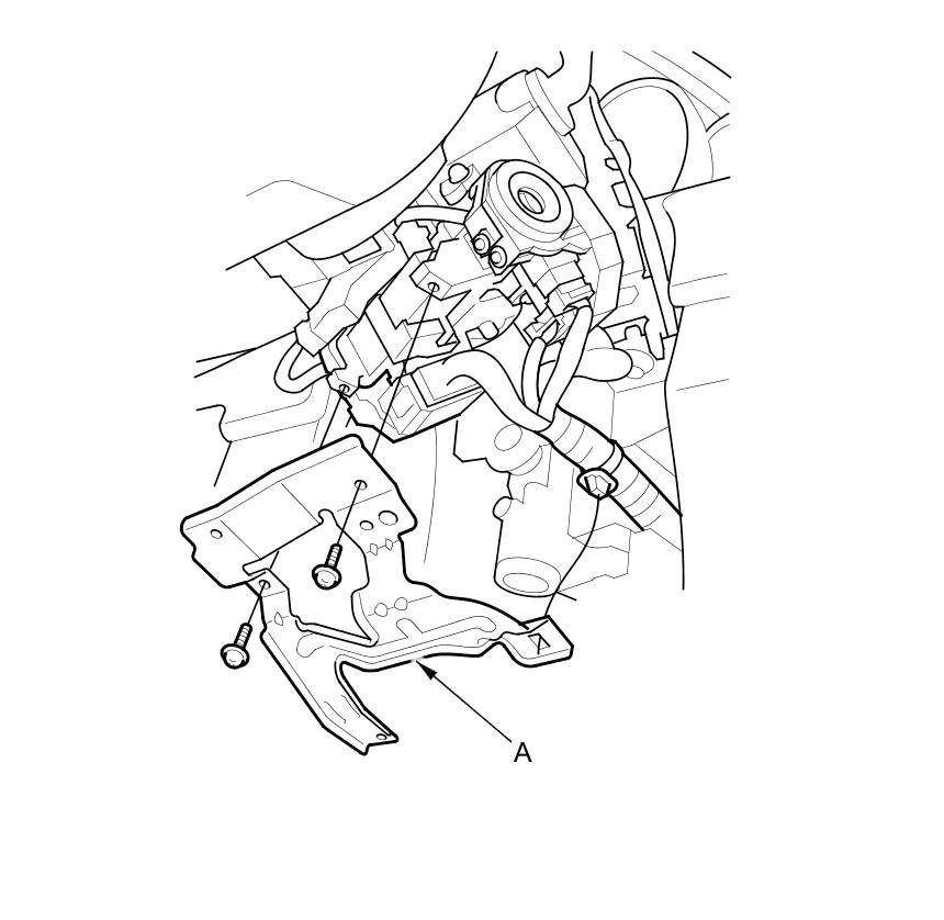 3. Remove the two screws, the harness clip, and the bracket (A).