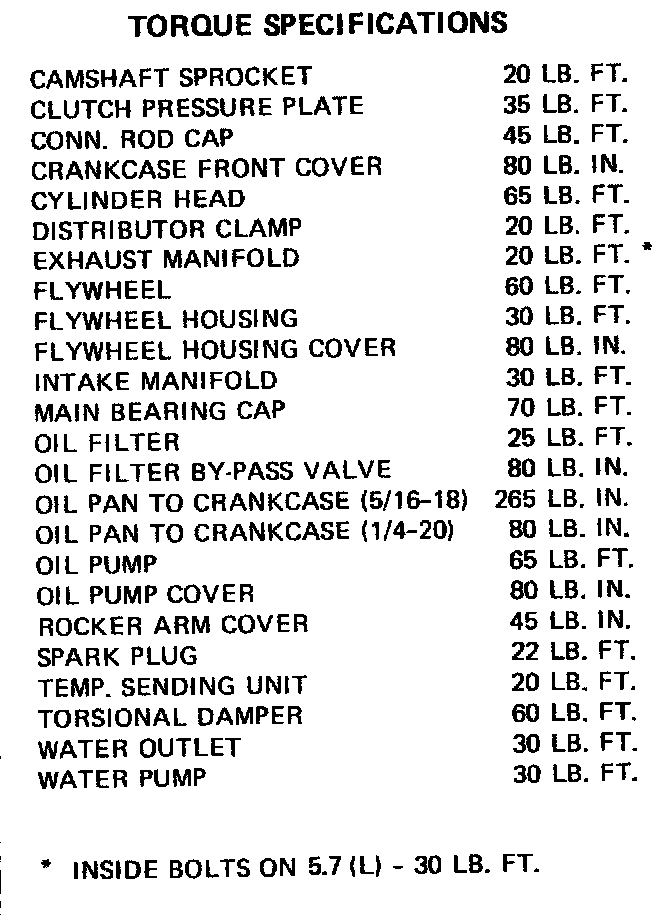 Torque Specifications:
