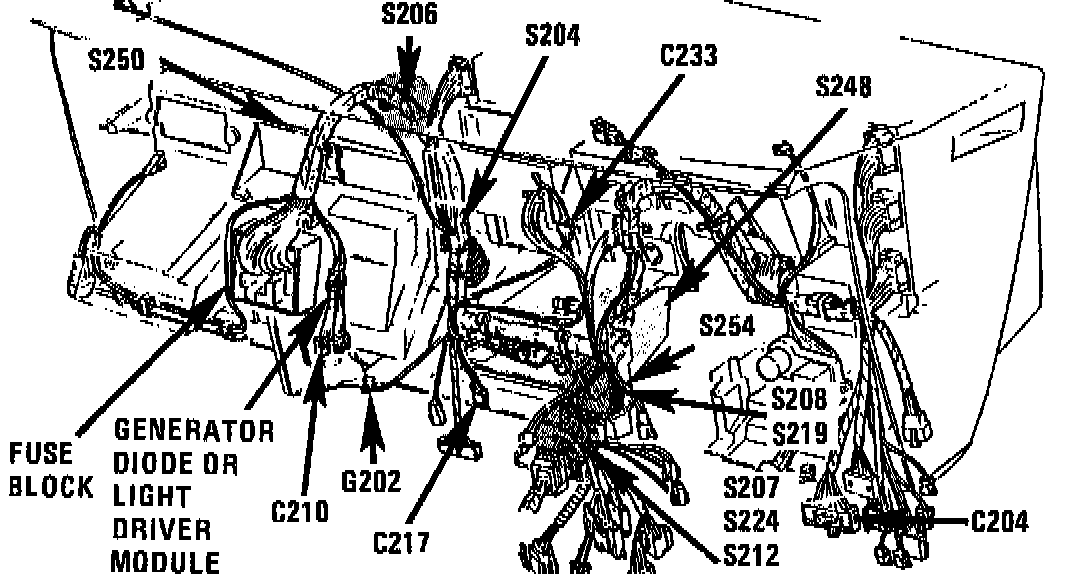 The Light Driver Module is taped to I/P harness, behind glove box.